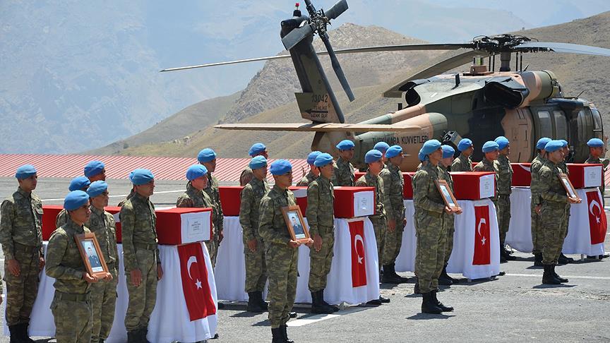 Hakkari İl Müftüsü M. Feysal Geylani'nin ettiği duanın ardından şehit Jandarma Teğmen Selim Coşkun (Adana), Jandarma Astsubay Kıdemli Çavuş İbrahim Betin (Afyonkarahisar), Jandarma Uzman Çavuşlar Sercan Özkul (Balıkesir), Hasan Keleş (Sakarya), Samet Aktaş (Bursa), Mustafa Tünel (İstanbul), Hüsnü Erkut (Tokat), Jandarma Astsubay Çavuş Bekir Eren Deniz'in (Çorum) naaşları helikopterle Van'a uğurlandı. Törende şehit askerlerin silah arkadaşları gözyaşı döktü.