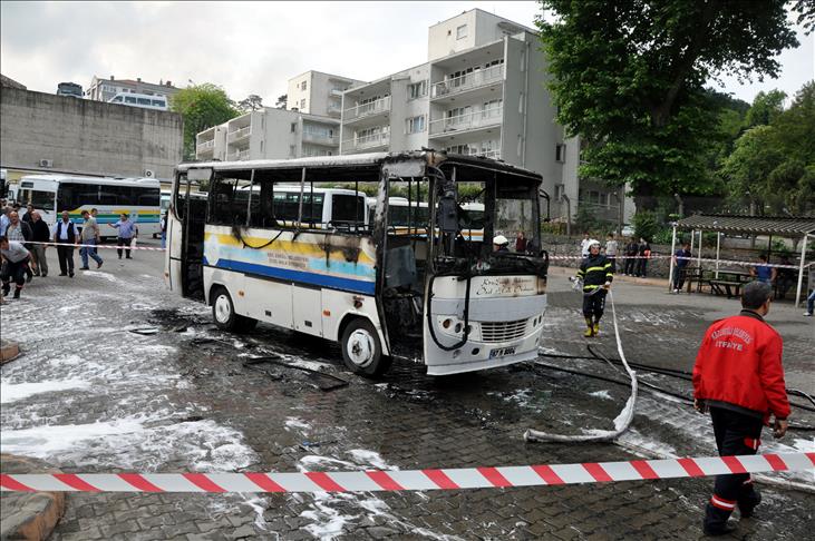 Ereğli'de, özel halk otobüsü sahibiyle arasında husumet bulunduğu ileri sürülen kişi, sürücüyü indirdikten sonra aracı benzin dökerek yaktı.
