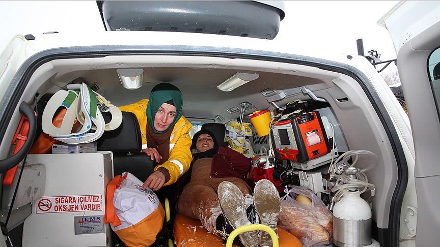 "Erzincan'a bırakacağız hastamızı. Kadın doğum, hastanın muayenesini gerçekleştirdikten sonra Erzincan'da Halk Sağlığı misafirhanesinde, doğumunu yapana kadar misafir edilecek. Doğumdan sonra herhangi bir problem olmazsa hastamız evine tekrardan yerleştirilecek. Şu anda kış şartlarından dolayı kendi ambulanslarımız köye çıkamayacağı için Merkez 112'den paletli ambulans istedik. Köy hizmetlerine yolu açmalarını rica ettik. Yaklaşık 4 saatlik bir süreçte hastaya ulaşmamız sağlandı. Bir saatte de geri döndük. 5 saattir yollardaydık, mutluyuz sağlıklı bir şekilde sonuca ulaştık."