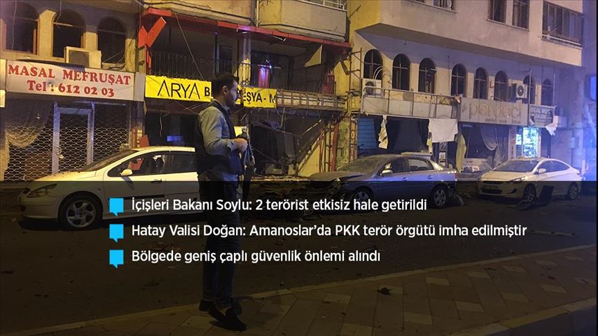 Hatay Valisi Rahmi Doğan, İskenderun ilçesinde 2 teröristin etkisiz hale getirildiği patlamaya ilişkin, "Bugün itibarıyla Amanoslar'da PKK terör örgütü imha edilmiştir ve herhangi bir PKK terör örgütü birimi de kalmamıştır." dedi.