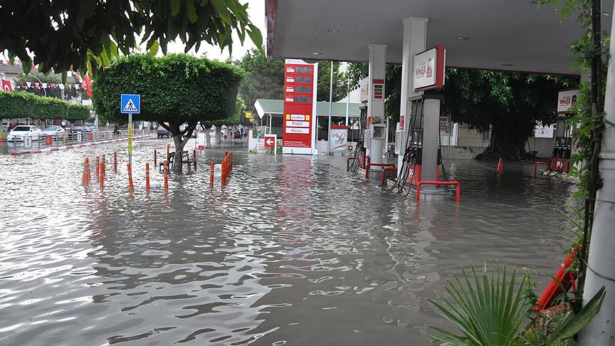 Hatay'ın Dörtyol ilçesinde etkili olan sağanak hayatı olumsuz etkiledi.