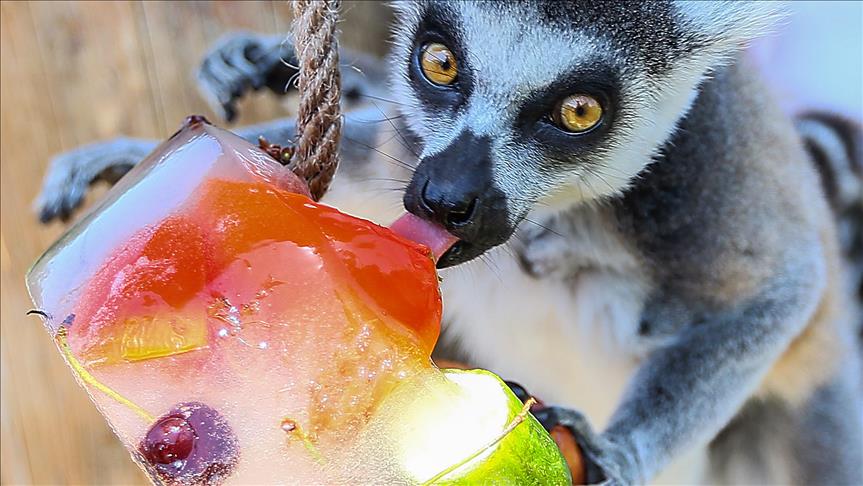 Parkın en renkli hayvanlarından lemurlara özel ilgi gösteriliyor. Bakıcıların elleriyle beslediği lemurlar, serinletilmiş muz, marul, kavun ve salatalıkları büyük bir iştahla yiyor.