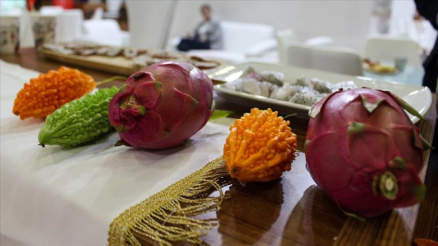 Sergilenen tropik kudret narı, papaya ve ejder meyvesi, renkleri, lezzeti ve isimleriyle ilgi odağı oldu.