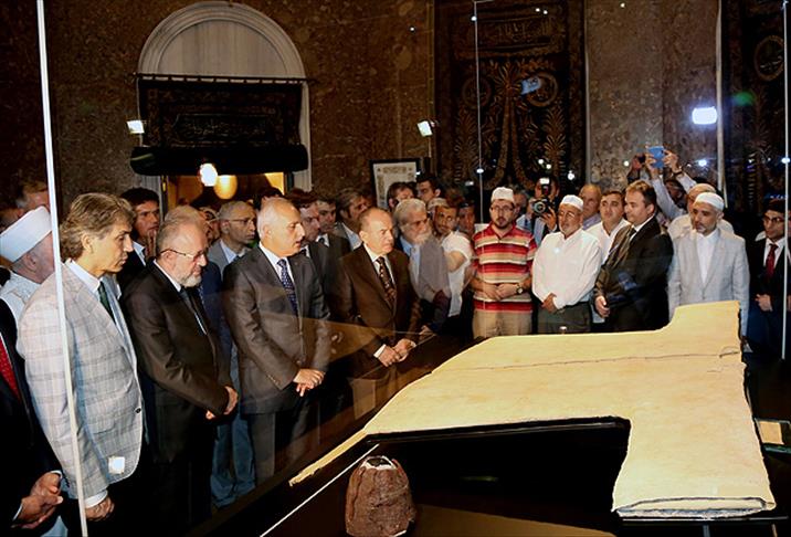 Törende Kur'an-ı Kerim tilaveti ve naatı şerif sonrası Fatih Müftüsü İrfan Üstündağ'ın yaptırdığı dua ile Hırka-i Şerif ziyarete açıldı. Kutsal emaneti ilk olarak İstanbul Valisi Mutlu ve Büyükşehir Belediye Başkanı Topbaş ziyaret etti.