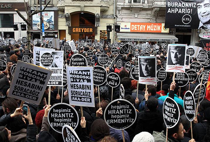 Şişli Meydanı'nda toplanan Hrant Dink'in eşi Rakel Dink, oğlu Arat Dink, kardeşi Orhan Dink, CHP Genel Başkan Yardımcısı Sezgin Tanrıkulu, BDP milletvekilleri Sebahat Tuncel ve Sırrı Süreyya Önder, Dink ailesinin avukatı Fethiye Çetin, Beşiktaş ''Çarşı'' taraftar grubu üyeleri ve Cumartesi Anneleri'nin de aralarında bulunduğu kalabalık grup, ''Hepimiz Hrant'ız, Hepimiz Ermeniyiz'' yazılı pankart açarak, Türkçe ve Ermenice sloganlar eşliğinde Halaskargazi Caddesi'ndeki Agos gazetesinin önüne kadar yürüdü.