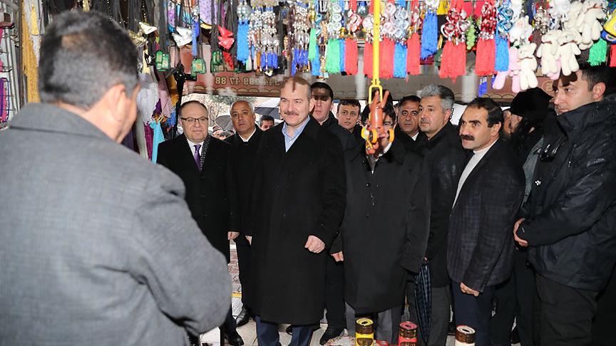 İçişleri Bakanı Süleyman Soylu, Siirt'in Baykan ilçesine bağlı Veysel Karani beldesinde esnaf ziyaretinde bulundu.
