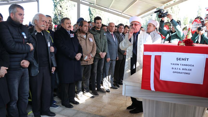 İdlib Gerginliği Azaltma Kontrol Gücü faaliyetleri kapsamında İdlib'in kuzeyinde hareket halindeki konvoya, bölücü terör örgütü mensuplarınca bombalı araçla yapılan saldırıda yaşamını yitiren DSİ 6. Bölge Müdürlüğü çalışanı Yasin Tanboğa (39) Adana'da toprağa verildi.