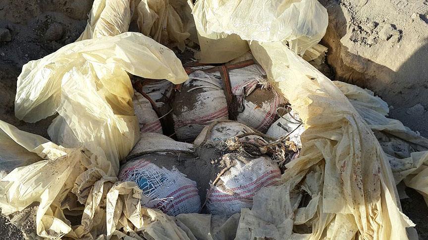 Köpeklerin gösterdiği alanlar, jandarma ekiplerince kazıldı. Kazıların ardından terör örgütünce 10 mutfak tüpünün içine yerleştirilmiş ve top mermisiyle güçlendirilmiş, patlamaya hazır 500 kilogram el yapımı patlayıcı bulundu.