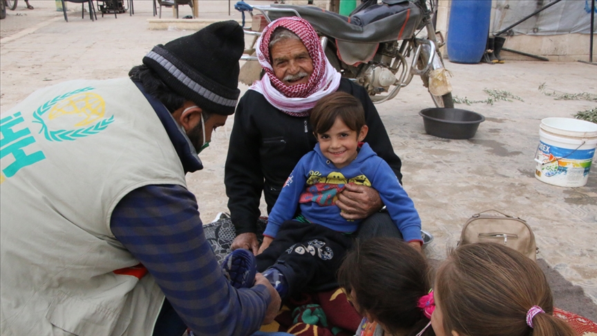 Yaptıkları çalışmalarla bu mağduriyeti ortadan kaldırmaya çalıştıklarını belirten Tosun, "10 Aralık Dünya İnsan Hakları Günü dolayısıyla tüm Türkiye'den gönderilen yardımlarla bir kış kampanyası başlatmıştık. Bu kampanya kapsamında yardım malzemelerinin dağıtımını da sürdürüyoruz. Özellikle kamplarda zor şartlar altında yaşayan 4 bin çocuğa mont ve çizme hediye ettik." ifadesini kullandı.