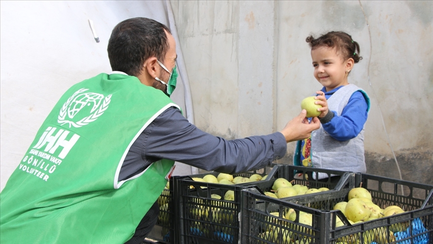 Türkiye'deki hayırseverlerin bağışının Suriye'de dağıtıldığını kaydeden Tunç, "Kış şartlarının ağırlaşmasıyla bölgede yaşam gittikçe zorlaşıyor. Anadolu'dan Suriye'ye gönderilen 470 ton sebze ve meyveyi, Afrin ve İdlib'de, başta mülteci kamplarında kalanlar olmak üzere, bölgedeki sivillere ulaştırdık." dedi.