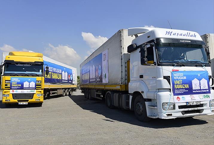 Konuşmanın ardından "Kardeşçe Paylaşım, Vakit Ramazan" pankartlarının asıldığı tırlar konvoy halinde yola çıktı.