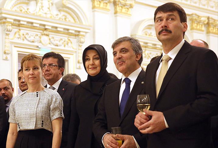 Cumhurbaşkanı Abdullah Gül ve eşi Hayrünnisa Gül, Macaristan Cumhurbaşkanı Janos Ader ve eşi Anita Herczegh tarafından onurlarına verilen resmi akşam yemeğine katıldı.