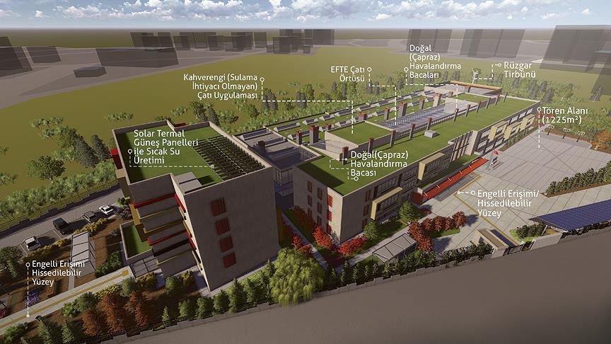 Enerjinin daha verimli kullanılması ve enerji tüketiminden kaynaklanan sera gazı salınımlarının azaltılması amacıyla tasarlanan bina, normal bir okul binasına göre yüzde 70 enerji tasarrufu sağlayacak.