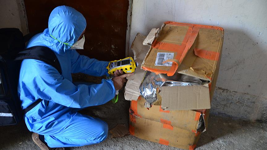 Olay yerine yönlendirilen AFAD KBRN ekipleri, multirae gaz tespit cihazı ile pakette inceleme yaptı.