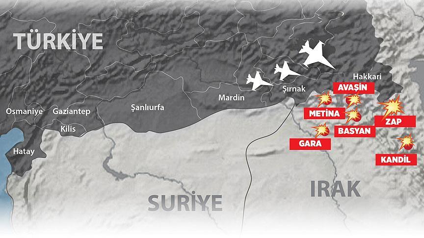 Güvenlik kaynaklarından edinilen bilgiye göre Türk Hava Kuvvetleri'ne ait 21 savaş uçağı Kandil, Hakkurk, Avaşin, Metina, Baysan, Gara ve Zap kamplarındaki hedeflere gece 23.50 ile 05.30 saatleri arasında yoğun hava bombardımanı düzenledi. İlk belirlemelere göre en az 60 terörist etkisiz hale getirildi. Terör örgütüne ait Gara'daki en büyük mühimmat deposu havaya uçuruldu.