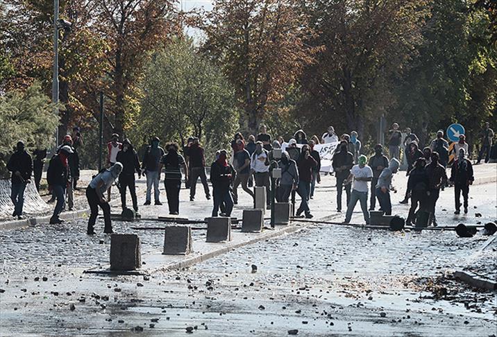 Şark Kahvesi mevkisinde toplanan yüzleri maskeli kişiler, yola barikat kurdu. Gruptakiler, polisin dağılmaları yönündeki uyarısına molotofkokteyli, taş ve şişe atarak karşılık verdi. Bunun üzerine ekipler, gruba biber gazıyla müdahale etti. Ara sokaklara dağılan göstericilerden birinin, polis ekiplerine doğru silahla ateş ettiği öğrenildi.
