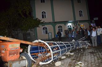 Cumhuriyet Caddesi'nde 9 katlı otel inşaatının iskelesi, şiddetli rüzgar nedeniyle yola devrilmiş, olayda 1'i çocuk 6 kişi yaralanmıştı.