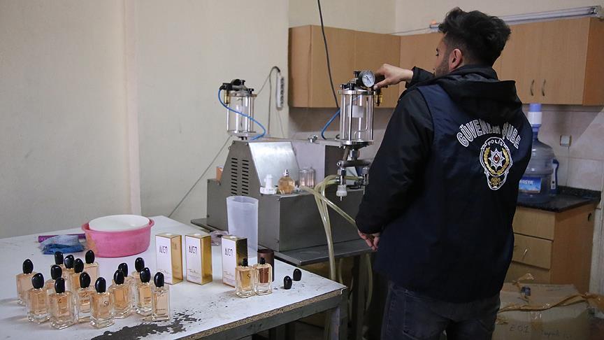 Sahte parfümün yapıldığı bir makineye de el koyan güvenlik güçleri, olayla ilgili 4 kişiyi gözaltına aldı.