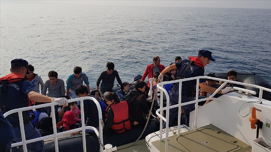 Sahil güvenlik ekipleri tarafından durdurulan lastik botta 21 Afganistan, 17 Suriye ve 3 İran uyruklu 41 düzensiz göçmen yakalandı.