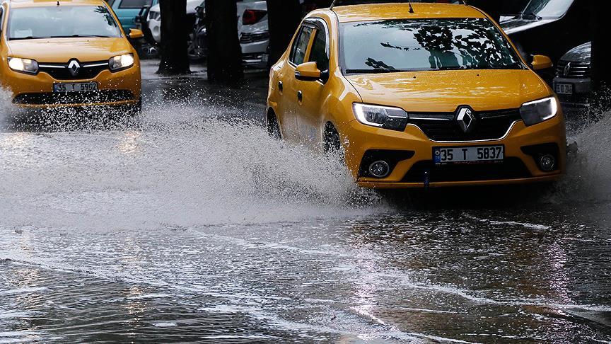 İzmir'de gece yarısından sonra etkili olmaya başlayan sağanak nedeniyle cadde ve sokaklarda su birikintileri oluştu.