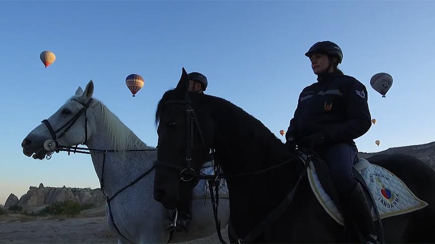 Jandarma Genel Komutanlığının sosyal medya hesaplarından paylaşılan klipte, jandarma teşkilatının at, köpek ve idarecilerinin Nevşehir Kapadokya'da devam eden eğitimlerinden görüntülere yer verildi.