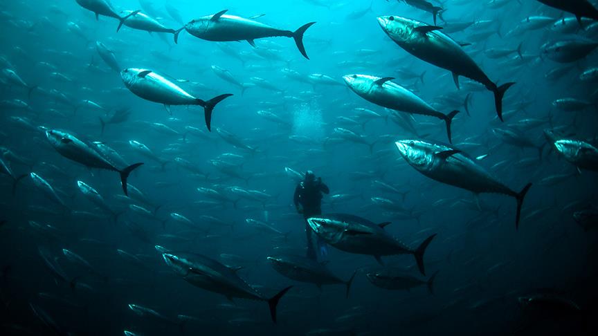 Sardalya, kolyoz ve uskumru ile beslenen orkinoslar aralık ayında Japonya'dan gelen fabrika gemilere veriliyor.