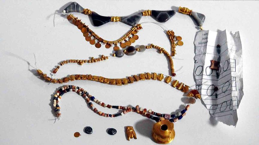 Altın ile değerli taşların kullanıldığı kolye ve küpe gibi mücevherler, savcılık incelemesinin ardından Muğla Müzesi yetkililerine teslim edildi.