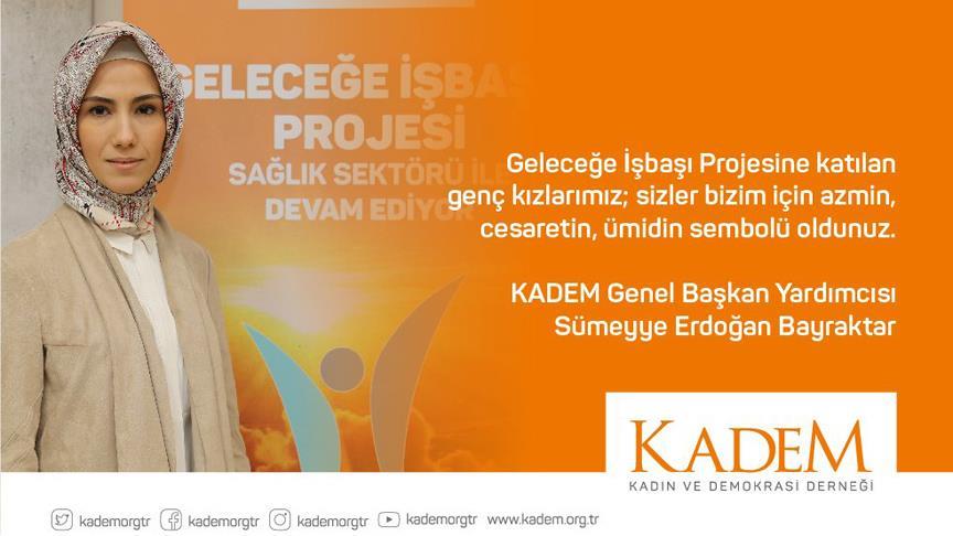 KADEM Genel Başkan Yardımcısı Sümeyye Erdoğan Bayraktar da projede eğitim alan genç kızları tebrik etti.
