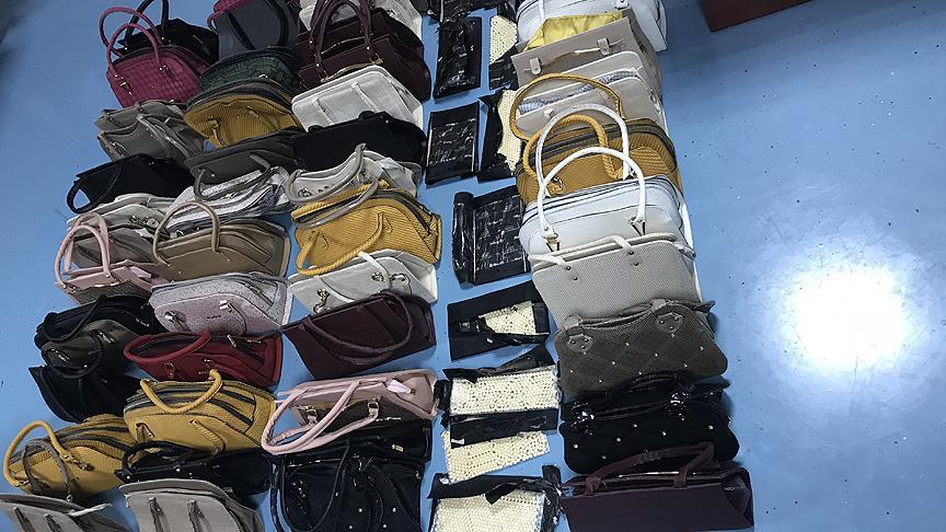 İş yerinde narkotik köpeği "Kanas" ile yapılan aramada, 4 kolideki 49 kadın omuz çantasında karbon kağıdına sarılmış 18 bin 226 uyuşturucu hap ele geçirildi.