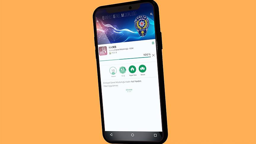 İçişleri Bakanlığı ile Aile ve Sosyal Politikalar Bakanlığı iş birliğinde hayata geçirilen ve akıllı cep telefonlarına indirilerek kullanabilen ücretsiz mobil uygulama KADES, şiddet mağduru ya da şiddete uğrama ihtimali bulunan kadınların kolluk kuvvetlerine tek tuşla ulaşabilmesini sağlıyor.