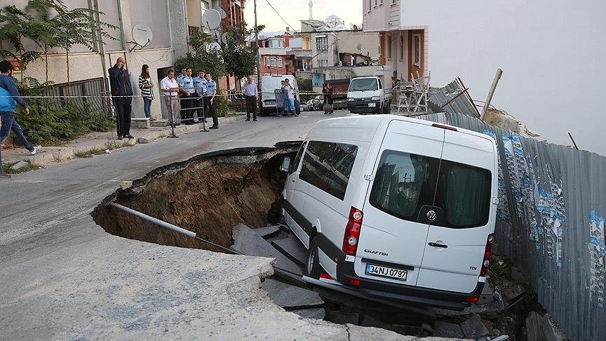 Sokakta park halinde bulunan 34 NJ 0797 plakalı servis minibüsü asfaltla inşaata doğru çöktü. Semtte oturan vatandaşların ihbarı üzerine olay yerine, zabıta, sağlık, polis ve itfaiye ekipleri sevk edildi.