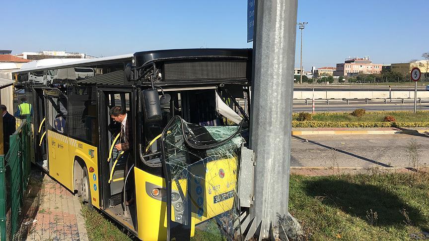 Yoldan çıkan otobüs denetim istasyonunun tabela direğine çarparak durabildi.