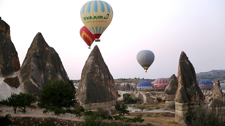 Türkiye'nin peribacaları, kayadan oyma kiliseleri ve vadileriyle ünlü turizm merkezi Kapadokya, Kurban Bayramı tatilinde yoğun ilgi görüyor.