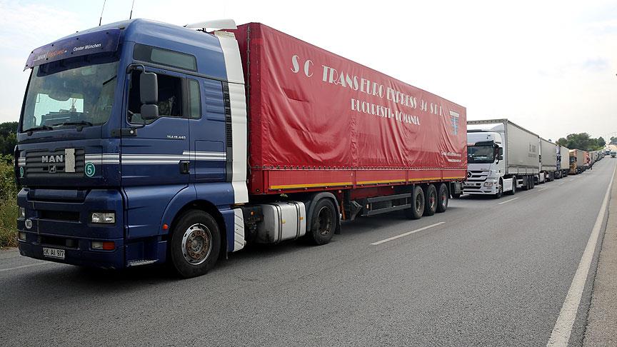 Kapıkule Sınır Kapısı'nda yurt dışına çıkış yapmak için bekleyen tırlar 10 kilometrelik kuyruk oluşturdu.