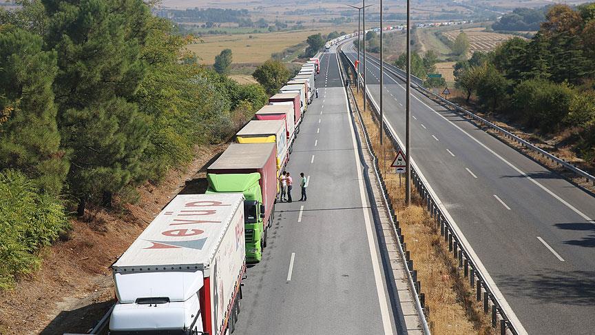 Yurt dışına çıkış yapmak isteyen tırların oluşturduğu kuyruk 25 kilometreyi buldu.