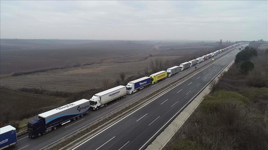 Avrupa'ya çıkış yapmak isteyen tırlar, Edirne'deki sınır kapılarında yoğunluğa neden oldu.
