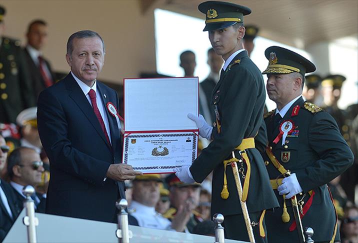 Törende, daha sonra diplomalar dağıtıldı. Dönem birincisi Piyade Teğmen Üzel, diplomasını Cumhurbaşkanı Recep Tayyip Erdoğan'dan aldı. Bu sırada özgeçmişi okunan Üzel'in, İngilizce ve Arapça bildiği kaydedildi.