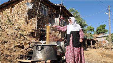 Şebinkarahisar ilçesinde yaklaşık 40 yıldır pekmez hazırlayan Müzeyyen Çiriş, dut pekmezinin yörenin vazgeçilmez ürünlerinden olduğunu söyledi.