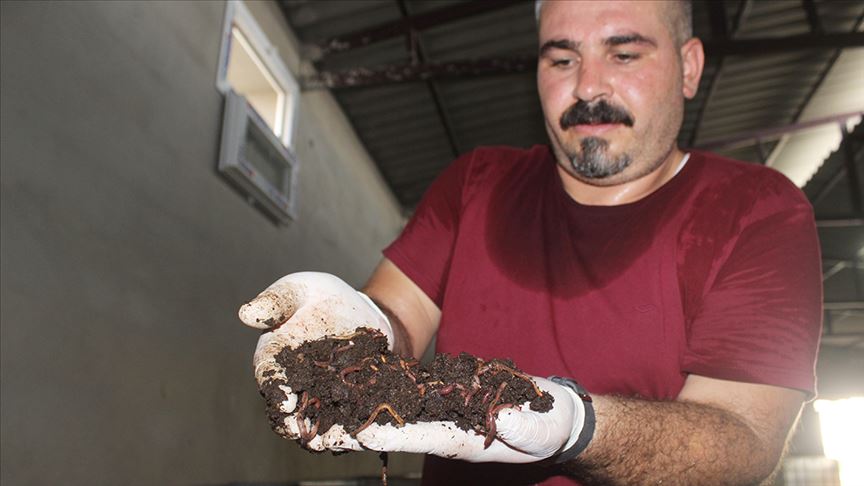 Yavuzer, ilçedeki evlerden, restoran ve kafe gibi iş yerlerinden çay posası, yumurta kabuğu, sebze ve meyve gibi atıkları toplayarak, tesisinde solucanlara yem olarak verdiğini söyledi.