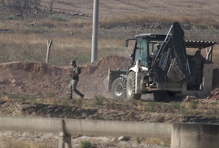 Sınırın karşı tarafında yer alan Cerablus kentinde ise terör örgütü DAEŞ'in iş makineleriyle sınıra hendek kazma işlemini sürdürdüğü gözlendi.