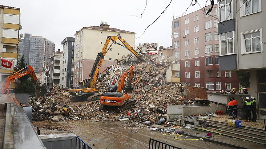 Yıkımına 10 Şubat'ta başlanan apartmandaki çalışmaların ardından kepçelerle molozları ayrıştırma ve taşıma işlemine başlanması bekleniyor.