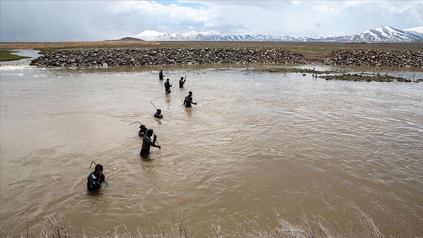 Yağmur ve eriyen kar nedeniyle araçların giremediği bölgeye traktörlerle ulaştırılan özel ekip, Bendimahi Deresi'nde yaklaşık 10 kilometrelik alanı ikinci kez kontrol etti.