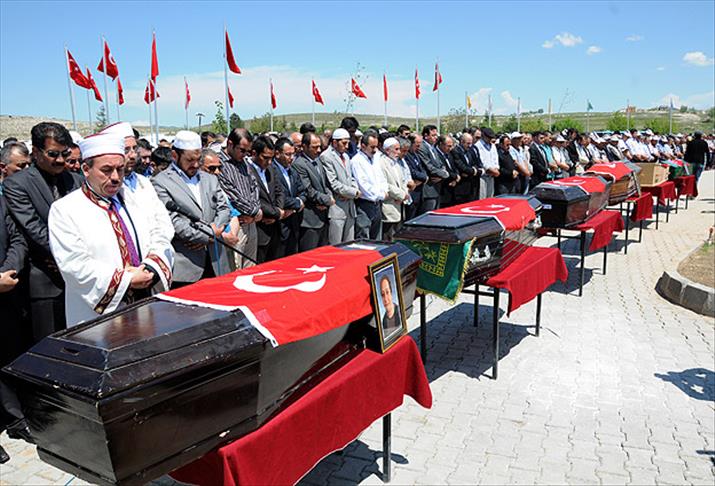 Kayseri'nin Yahyalı ilçesinde, midibüsün Çamlıca 3 Barajı'na düştüğü kazada hayatını kaybeden 6 kişi için Nevşehir'in Gülşehir ilçesinde toplu cenaze töreni düzenlendi.