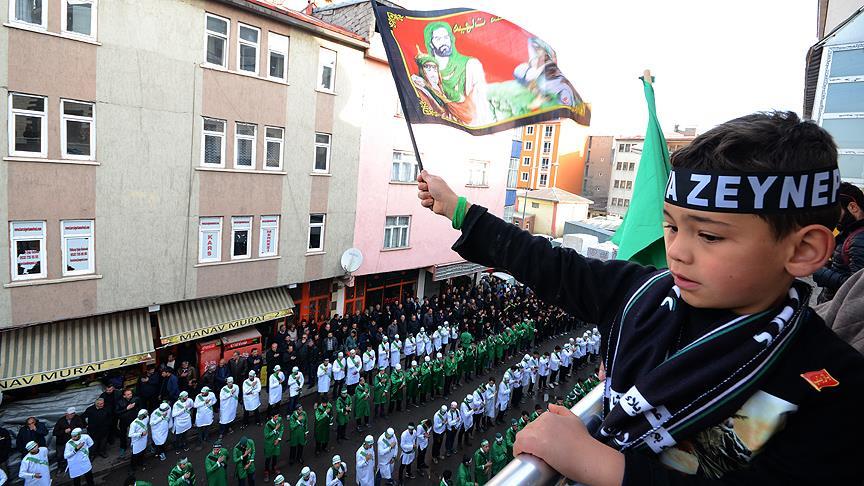 Hazreti Ali Çarşı Camisi önünde bir araya gelen, ellerinde Türk bayrağı, Atatürk ve Hazreti Ali'nin posterlerini taşıyan yaklaşık 10 bin kişilik grup, Faikbey Caddesi'nden Merkez Ehlibeyt Camisi önüne kadar mersiyeler eşliğinde sine dövüp, vücutlarına zincir vurdu. Okunan mersiyelerde bazı vatandaşların gözyaşlarını tutamadıkları görüldü.