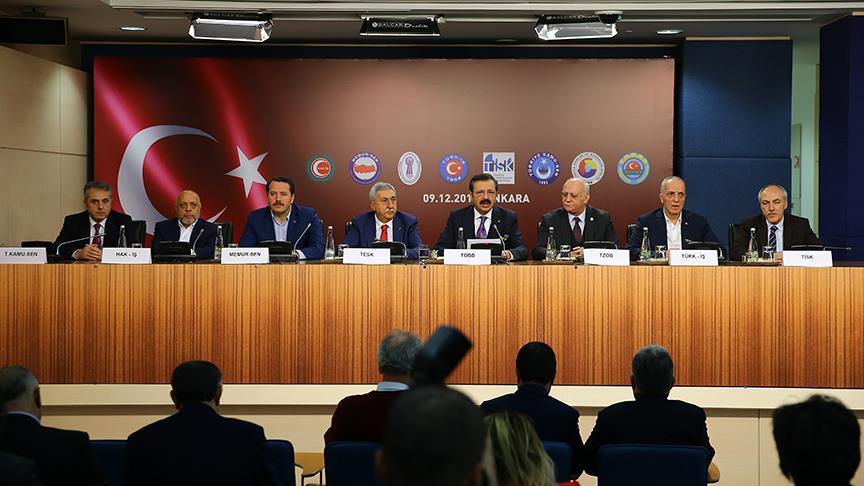 Türkiye-Avrupa Birliği Karma İstişare Komitesi (KİK) Türkiye kanadını oluşturan TOBB, Türkiye İşçi Sendikaları Konfederasyonu (Türk-İş), Türkiye İşveren Sendikaları Konfederasyonu (TİSK), Türkiye Esnaf ve Sanatkarları Konfederasyonu (TESK), Türkiye Ziraat Odaları Birliği (TZOB), Hak İşçi Sendikaları Konfederasyonu (Hak-İş), Memur Sendikaları Konfederasyonu (Memur-Sen), Türkiye Kamu-Sen tarafından, TOBB İkiz Kuleler'de ortak basın toplantısı düzenlendi.