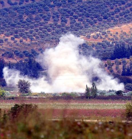 Suriye'den ateşlendiği sanılan top mermisi, sınırdaki Akçabağlar köyünde Mehmet Ali Bakır'a ait zeytin ağaçlarının bulunduğu tarlaya düştü. Köylülerin ihbarı üzerine olay yerine gelen jandarma ekipleri, çevre güvenliğini aldıktan sonra top mermisinin düştüğü alanı inceledi. Ekip, tarlaya dağılan şarapnel parçalarını topladı.