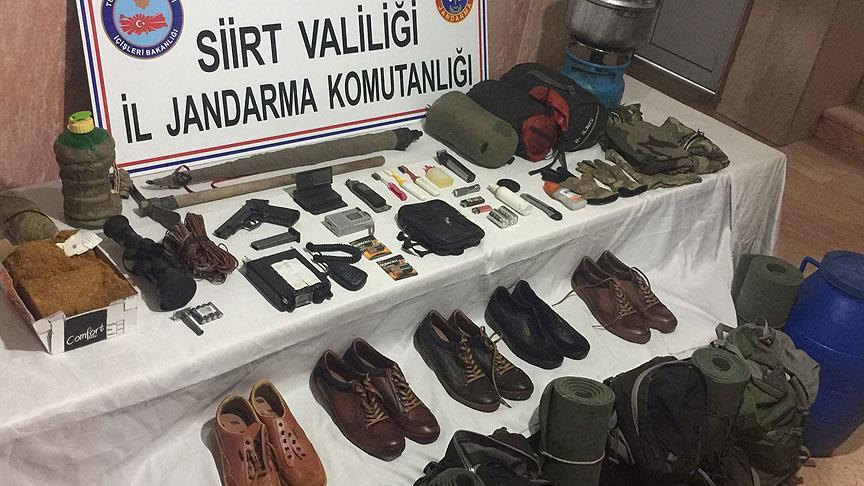 Açıklamada, bölgede başlatılan arama ve tarama faaliyetlerinde tabanca ve şarjörü, silah üstü gece görüş dürbünü, telsiz, 2 radyo, ses kayıt cihazı ve hafıza kartı, 5 çift ayakkabı, 2 pil, sekizli pil bloğu, kot pantolon, 3 uyku tulumu, 3 sırt çantası ve 5 not defteri, bol miktarda muhtelif yaşam malzemesi ve örgütsel doküman ele geçirildiği aktarıldı.