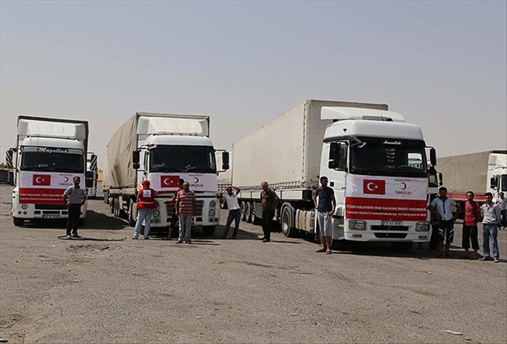 Türk Kızılayı'nın, Telaferli Türkmen aileler için gönderdiği 16 tırlık yardım malzemesi Irak’ın Erbil kentine ulaştı.