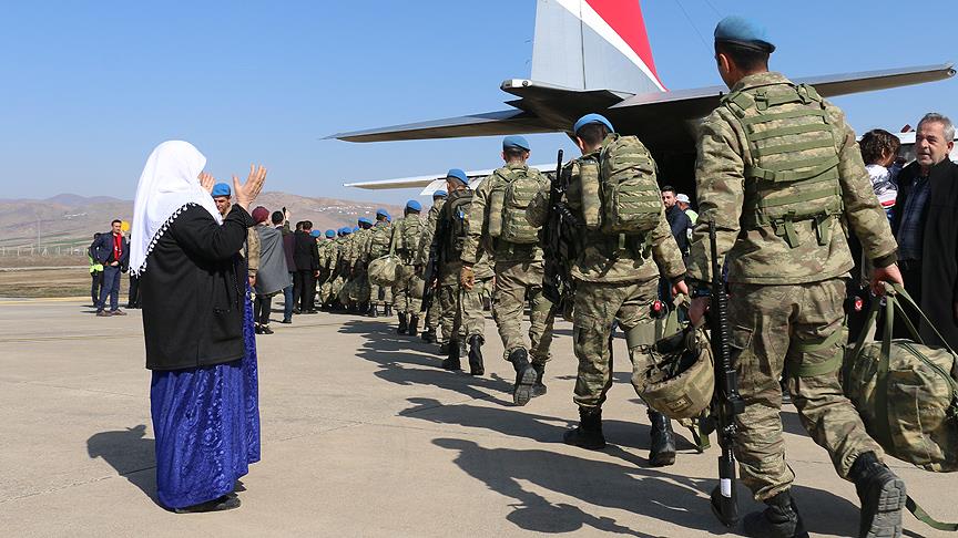 Siirt'te iki tabur komando, Türk Silahlı Kuvvetlerince (TSK) Suriye'nin Afrin bölgesinde terör örgütleri PYD/PKK ve DEAŞ'a yönelik başlatılan Zeytin Dalı Harekatı'na katılmak üzere bölgeye uğurlandı.