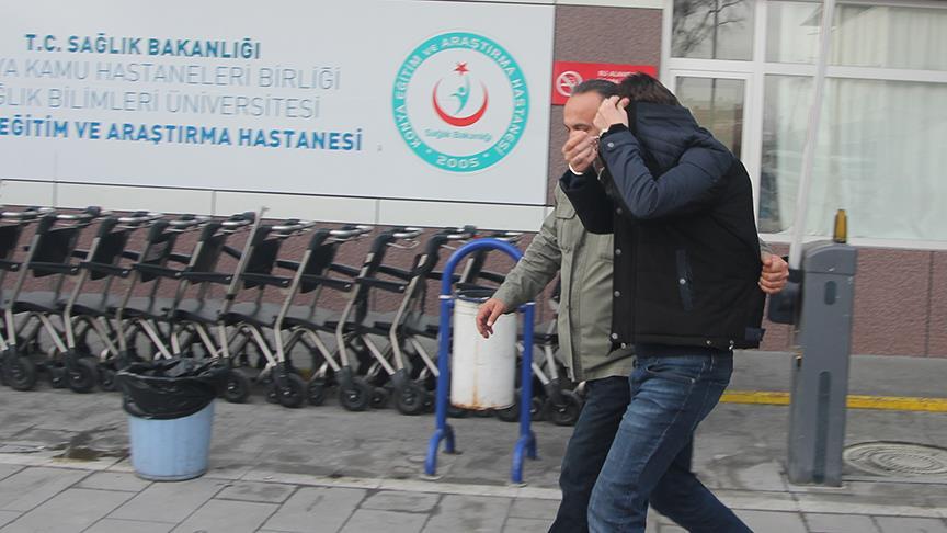 Konya Eğitim ve Araştırma Hastanesi'nde sağlık kontrolünden geçirilen şüpheliler, ifadeleri alınmak üzere emniyete götürüldü.